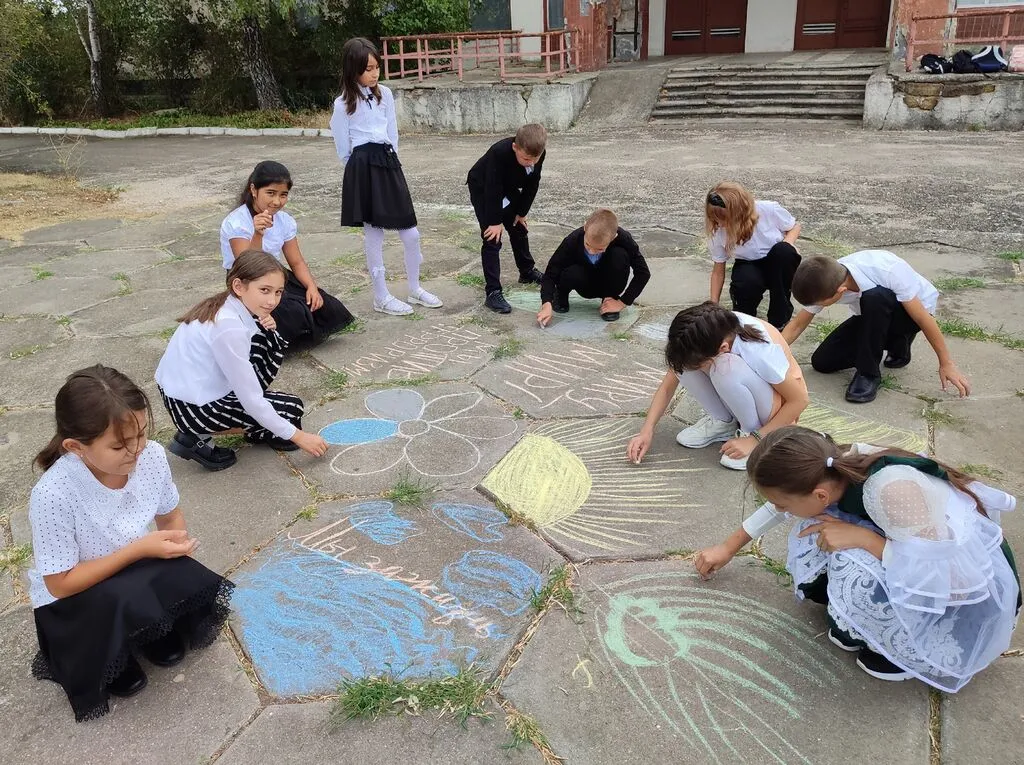 Советник директора по воспитанию Гуменюк Ю.В., классный руководитель 4 класса Шмигленко Н.С. с обучающимися приняли участие в региональной акции "Мы рисуем мир".