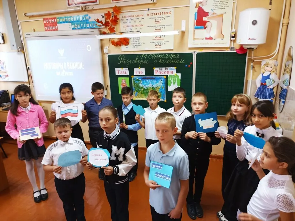 В рамках цикла внеурочных занятий "Разговоры о важном" состоялся урок на тему: "Там, где Россия". Учащиеся и педагоги совершили удивительное путешествие по нашей великой стране России.