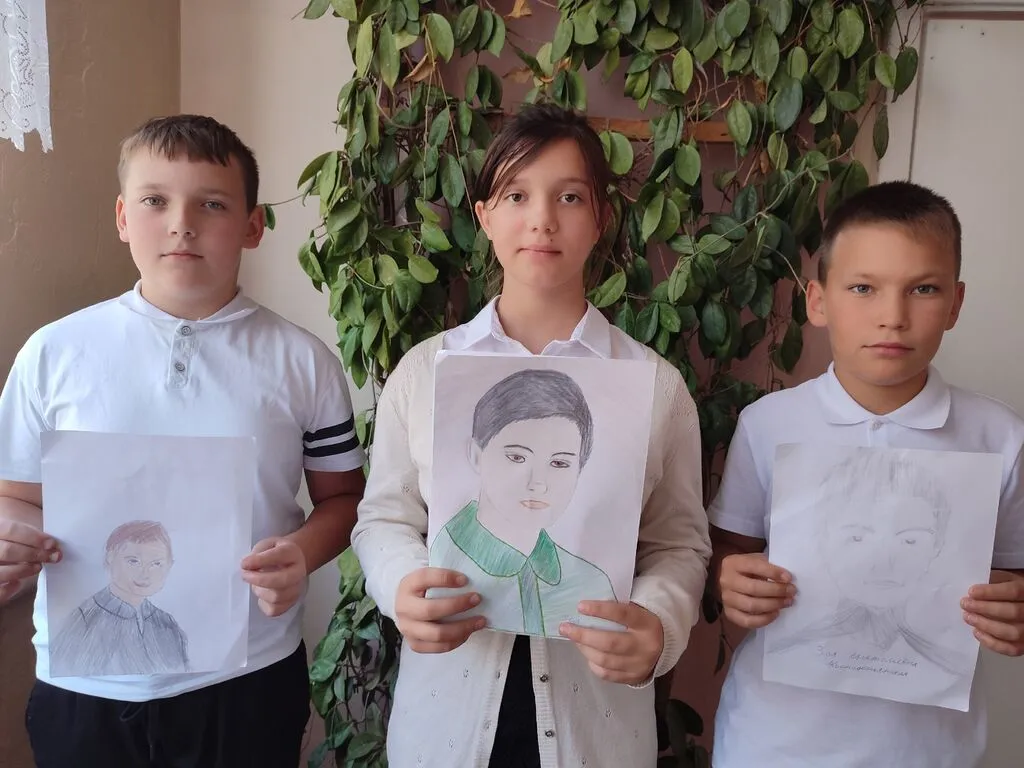 Художественная выставка "Портрет Героя". Работы учащихся, посвящённы Герою Советского Союза, советской партизанке Зое Космодемьянской.