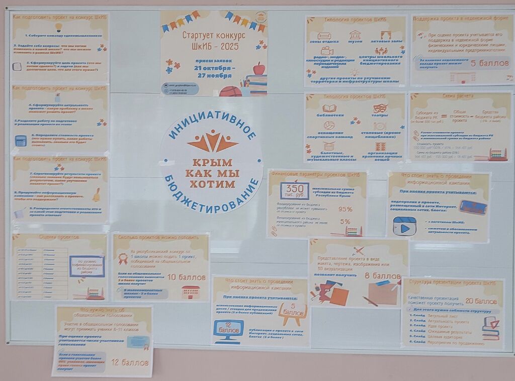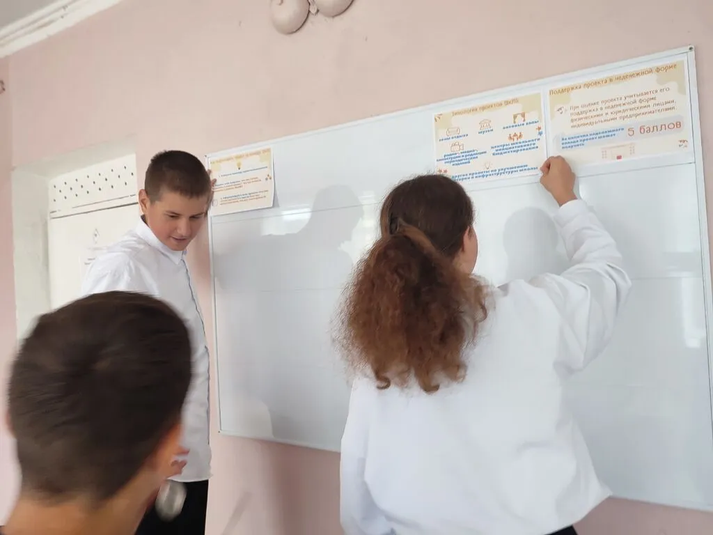 В ходе встречи ребята вместе с куратором подготовили информационный стенд, в котором подробно описаны условия участия в конкурсе, типология и структура проектов и другие условия получения баллов.