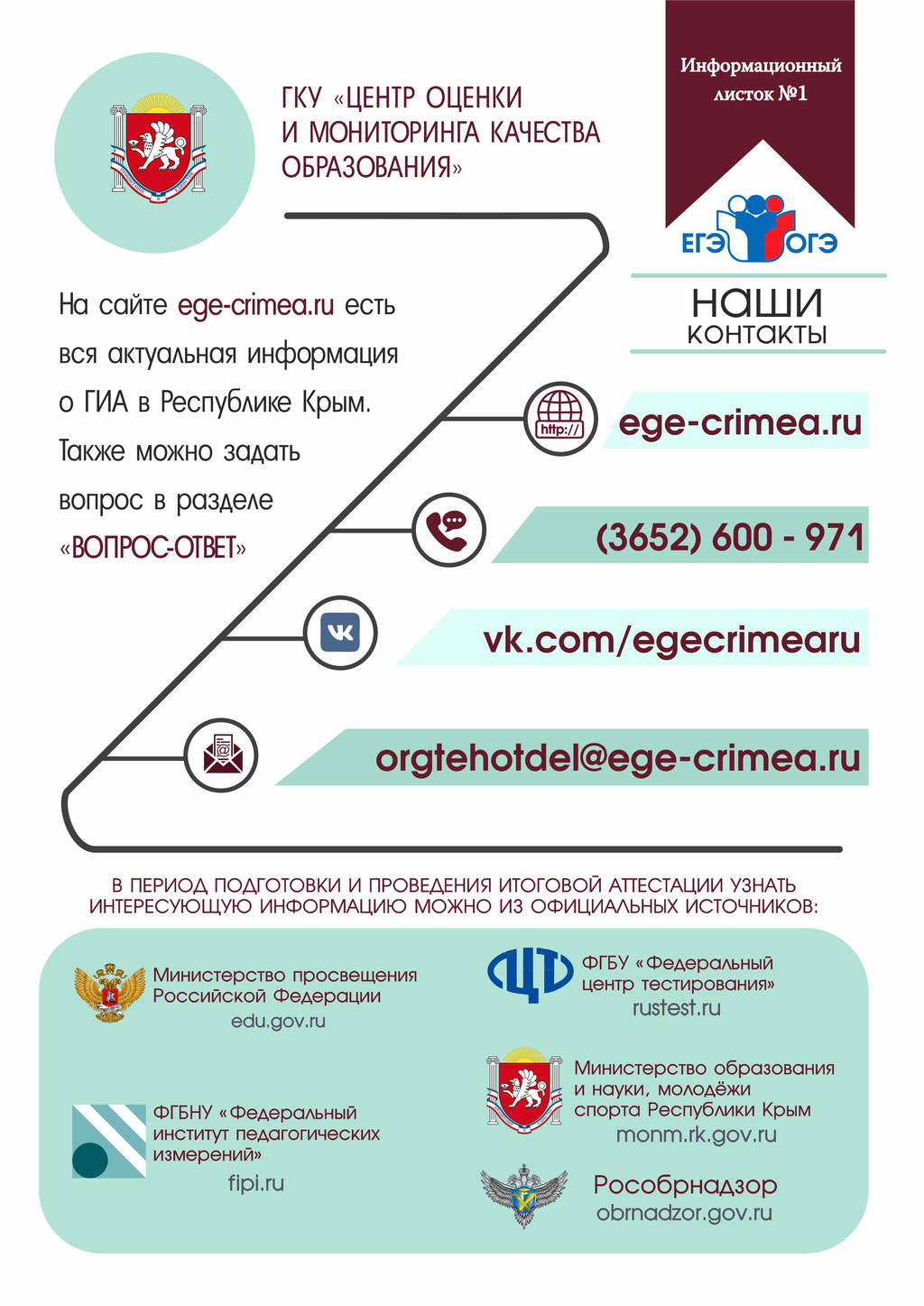 Телефон «горячей» линии по вопросам ЕГЭ в Республике Крым (3652) 600-971
